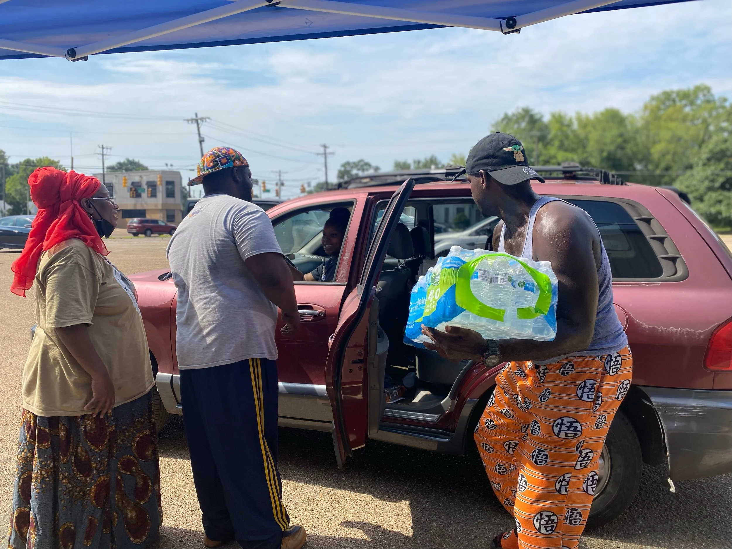 We met Imani Olugbala-Aziz at a local community centre where she and others from the volunteer group Cooperation Jackson were handing out bottled water. It took less than an hour for them to run out. She tells us she barely has water at her own home.